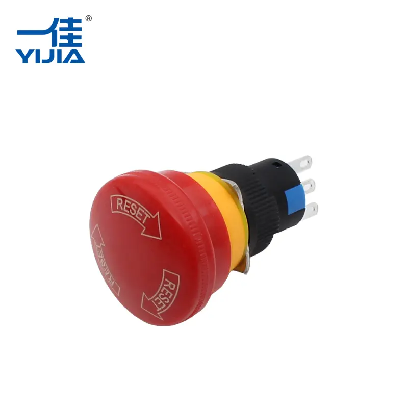 Бутонът за изключване на аварийни аварийни спиране със символ за спиране. Това е критично устройство за безопасност, предназначено незабавно да спре машините, електрическите системи или индустриалните процеси в опасни ситуации. Основната му цел е да предотврати наранявания, повреди от оборудването или катастрофални повреди, като позволи на операторите бързо да деактивират система с едно действие. Той използва бутон с форма на червена гъба, който може да бъде натиснат, усукан или издърпан, за да се ангажира. И бутонът за изключване на аварийните ситуации е конструиран от здрави материали, за да издържа на сурови индустриални среди. Yijia е известната марка за аварийни бутони. А Yijia е доставчик на превключвател на бутони за целия свят.